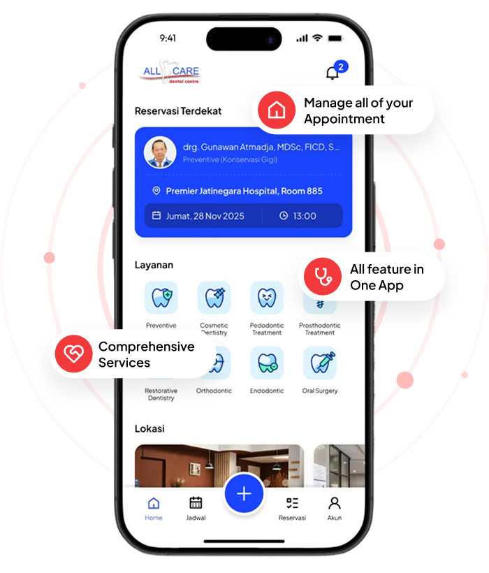 All Care Dental Centre vision and mission is to deliver dental treatment as a part of the whole body health. Finally in 2003, due to high demand, All Care Dental Centre opened another dental clinic at Pondok Indah area strategically located opposite Pondok Indah Mall, South Jakarta.